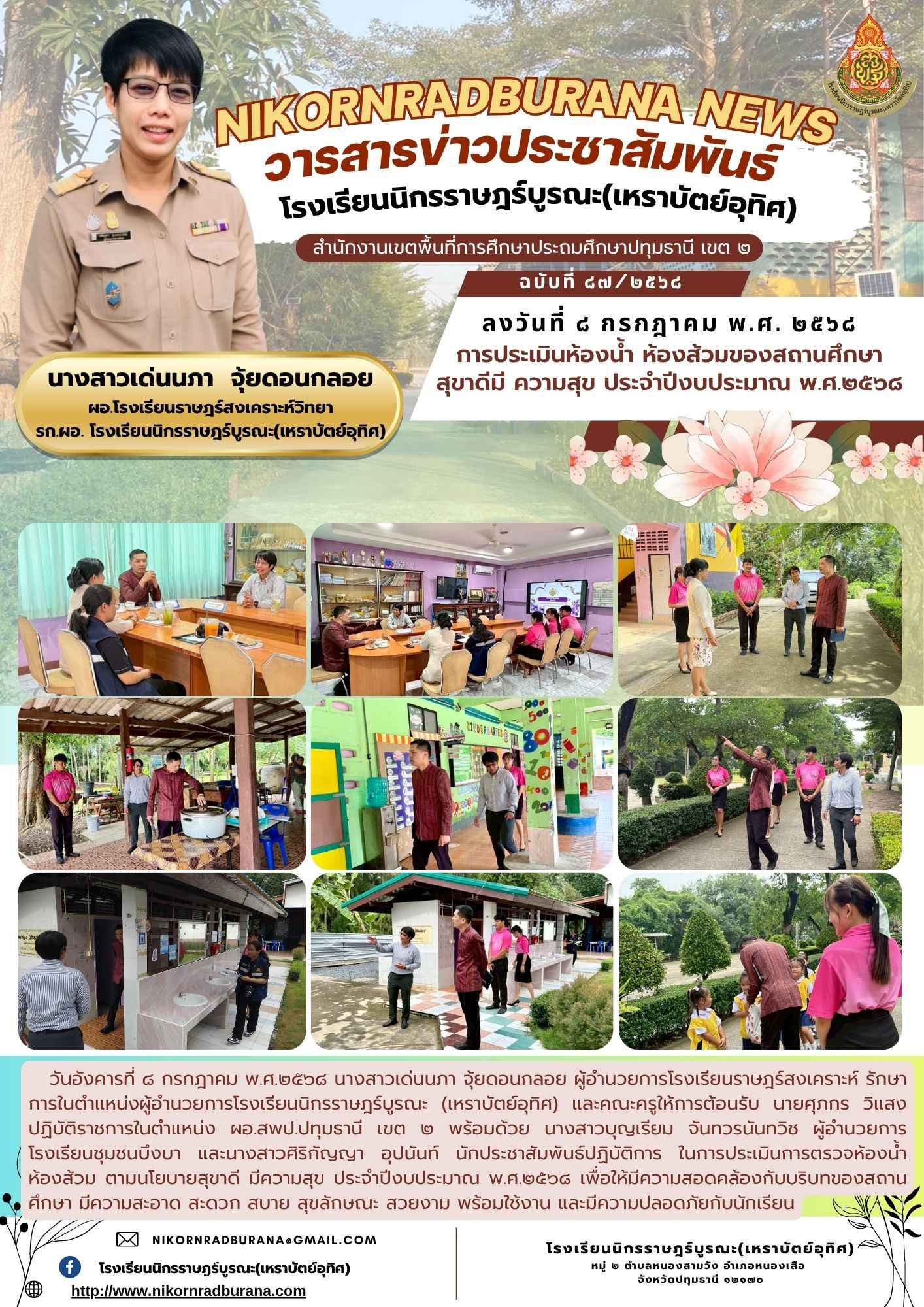 การประเมินห้องน้ำ ห้องส้วมของสถานศึกษา สุขาดีมี ความสุข ประจำปีงบประมาณ พ.ศ.๒๕๖๘